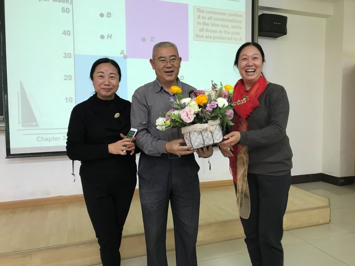 其间,学院姚建文副院长正在大家插花的教室对面给MBA同学上课,课休时间过来看大家插花。
