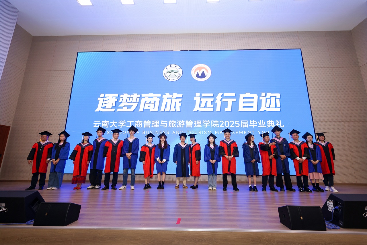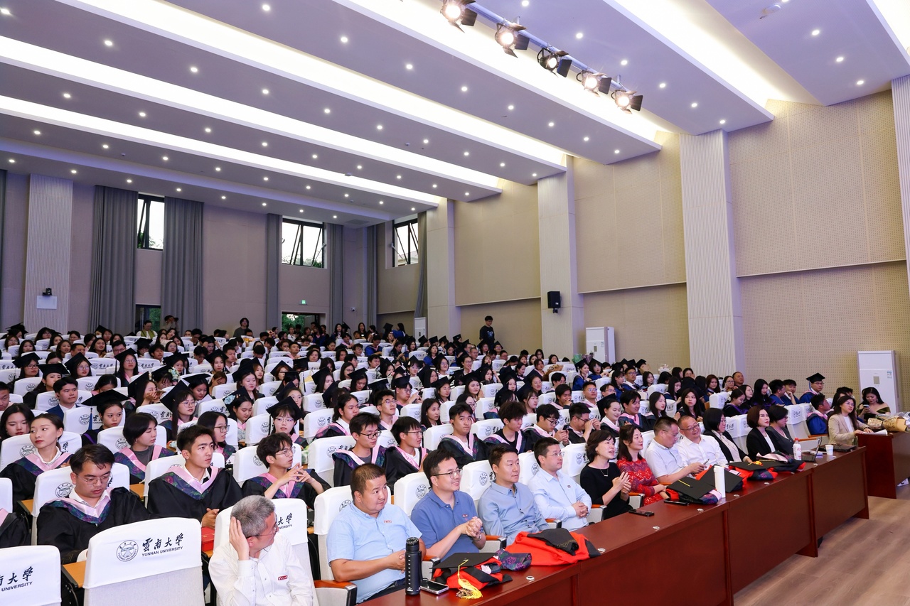 导师代表倪向丽以创业经历寄语,鼓励毕业生们不轻言弃,在未来实现自我价值,获得属于自己的成功。本科毕业生代表马雯曦、研究生毕业生代表葛广明先后发言,表示将践行云大校训,以奋斗实绩回馈母校与社会。