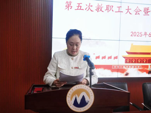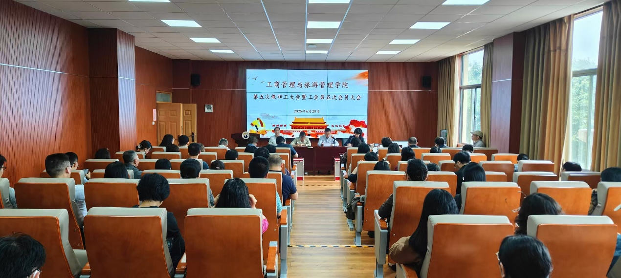 在学院1313报告厅召开第五次教职工大会暨工会第五次会员大会。学院教职工、工会会员和党政领导参加会议。学校工会副主席木立群同志到会指导工作,学院党委书记杨扬同志主持会议。